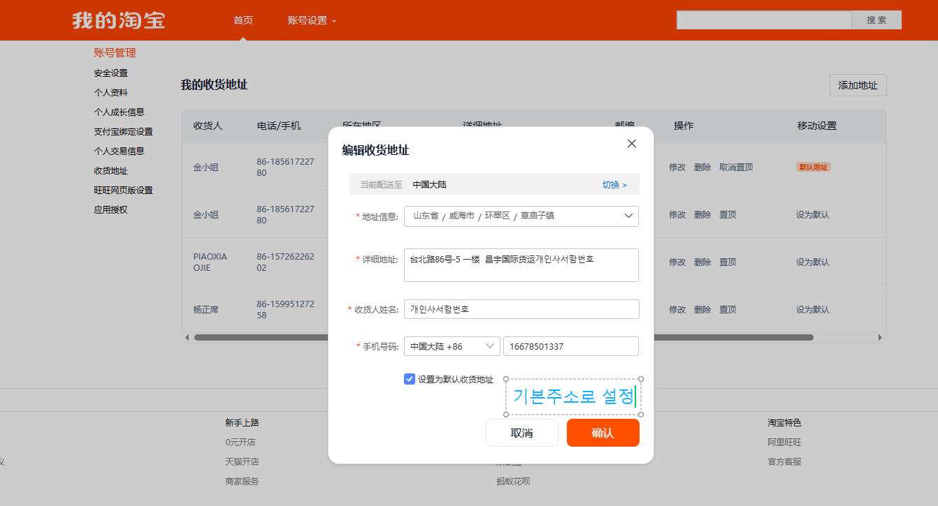 배송지 입력 시 개인 사서함 번호 꼭 입력해 주세요.